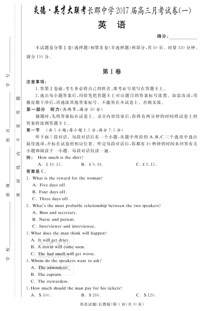 | 資源類別: | 名校月考 | |
