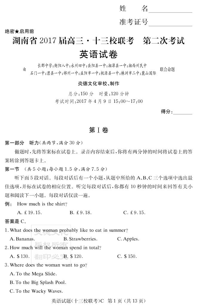 下一篇:【語(yǔ)文】炎德英才大聯(lián)考2017長(zhǎng)郡中學(xué)高三8次月考(十三校聯(lián)考二)
