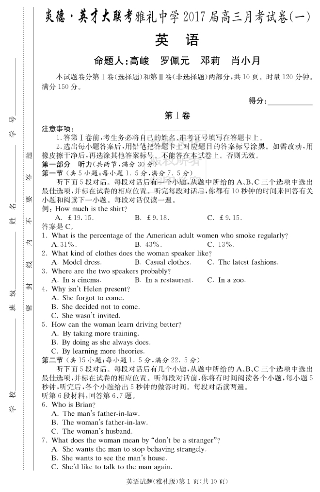 上一篇:【物理】炎德英才大聯考2017雅禮中學高三1次月考