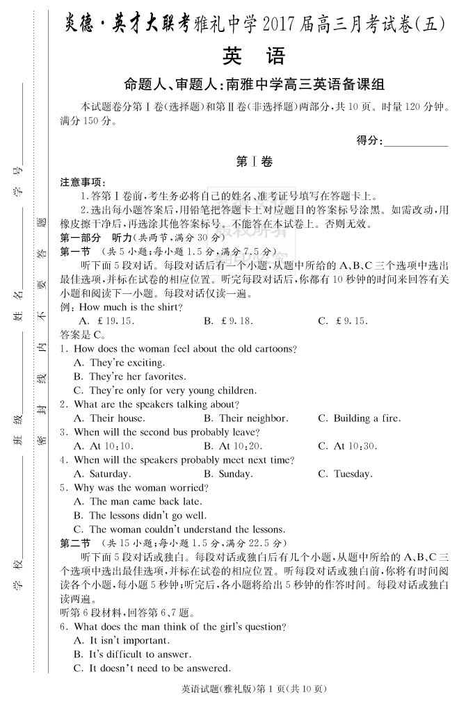 | 資源類別: | 名校月考 | |
