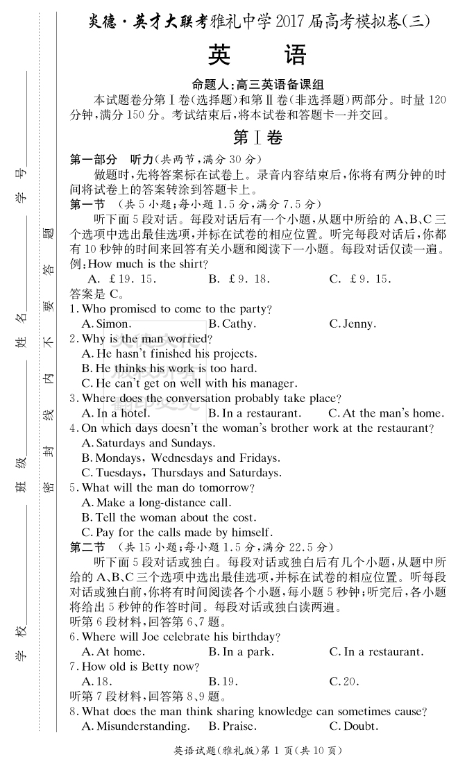 | 資源類別: | 名校月考 | |
