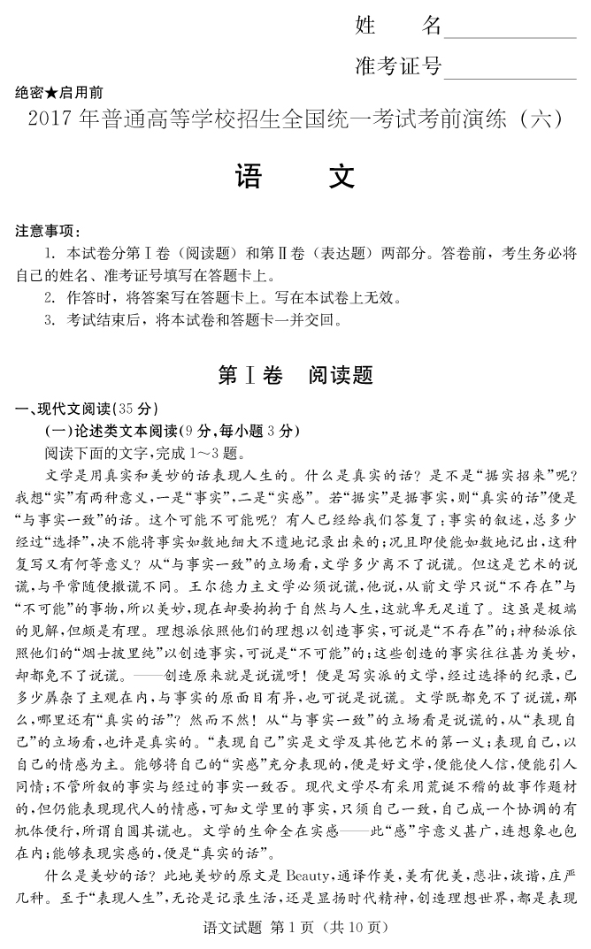 上一篇:【英語】2017年普通高等學校招生全國統一考試考前演練(六)