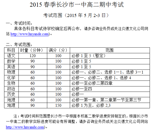 下一篇:2015春季長沙市一中高二學(xué)業(yè)水平考試仿真模擬試卷一考試時間安排(2015年5月15-16日)