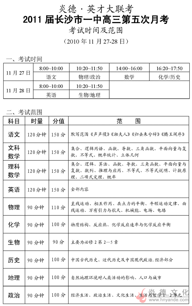 下一篇:炎德英才大聯考長沙市一中2011屆高三第六次月考考試時間和范圍