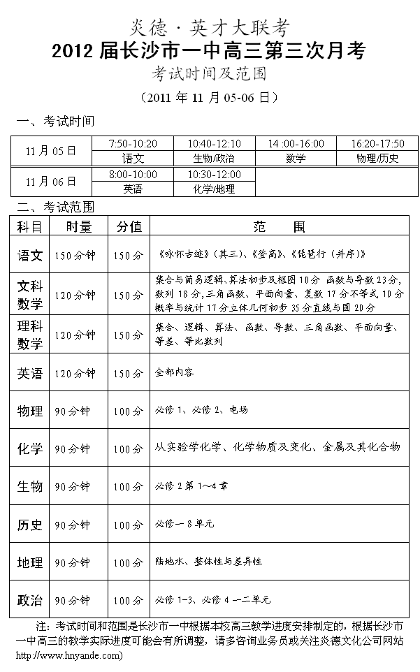 上一篇:炎德英才大聯考長沙市一中2012屆高三月考試卷考試時間和范圍