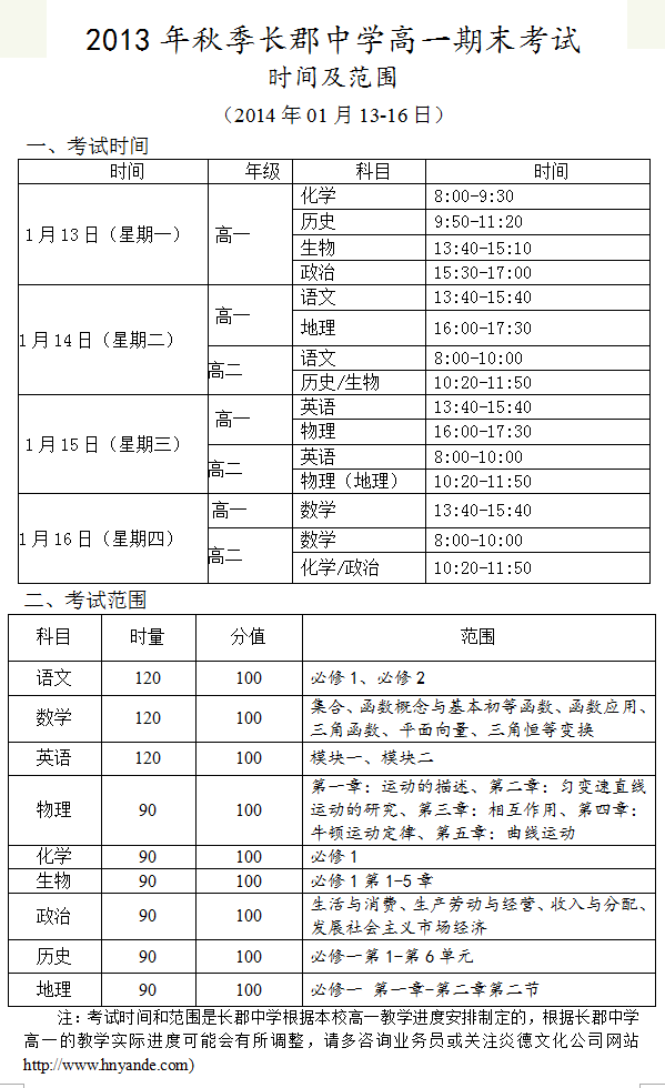 上一篇:2013年秋季長郡中學(xué)高一期中考試時(shí)間和范圍(2013.11.04-06)