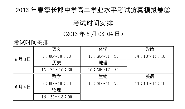 2013年春季長郡中學(xué)高二學(xué)業(yè)水平考試仿真模擬卷③考試時(shí)間范圍(2013.06.03-04)