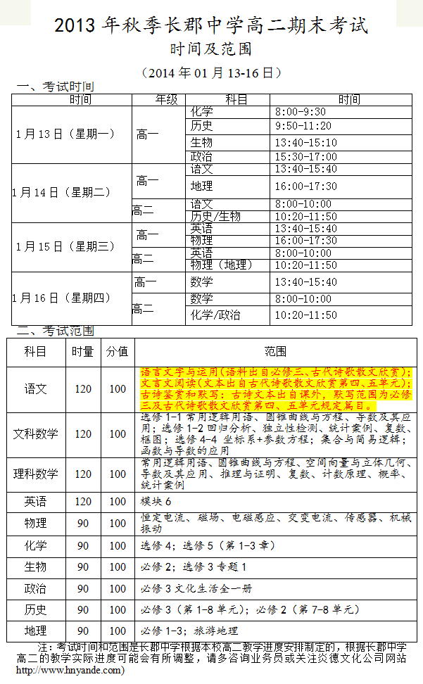 上一篇:2013年秋季長郡中學高二第三次月考考試時間和范圍(2013.12.14-15)