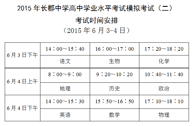 上一篇:2015春季長郡中學高二學業水平考試仿真模擬試卷一考試時間安排(2015年5月4-6日)
