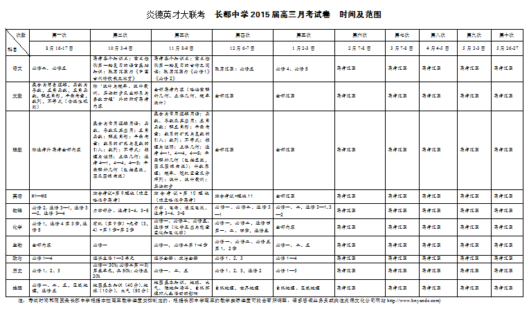 炎德英才大聯(lián)考長郡中學(xué)2015屆高三月考試卷考試時間和范圍(第1-10次)
