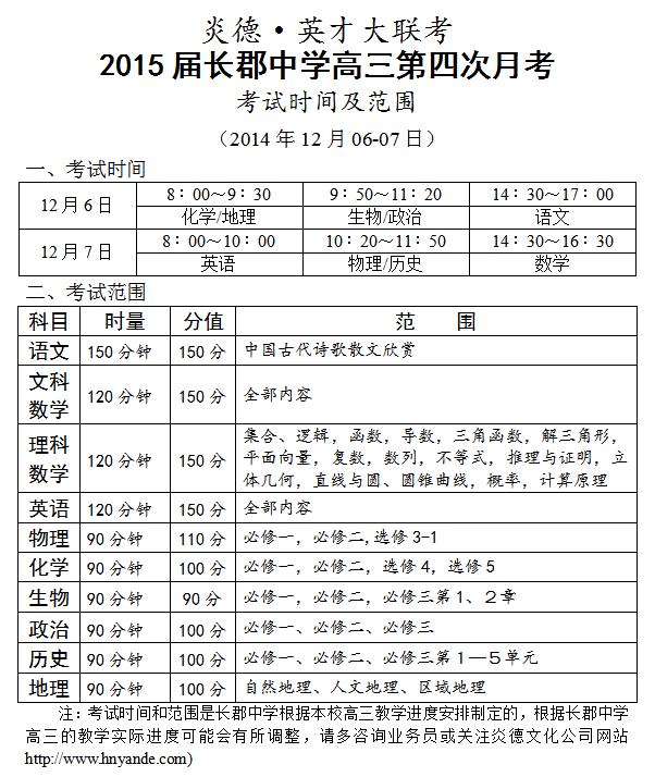 上一篇:炎德英才大聯考長郡中學2015屆高三第3次月考考試時間和范圍(2014.11.08-09)