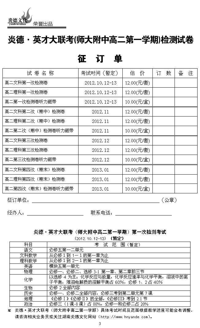 來源:炎德文化點擊:2012-09-24 10:09:00收藏本文當前位置:考試范圍 師大附中 高二 正文