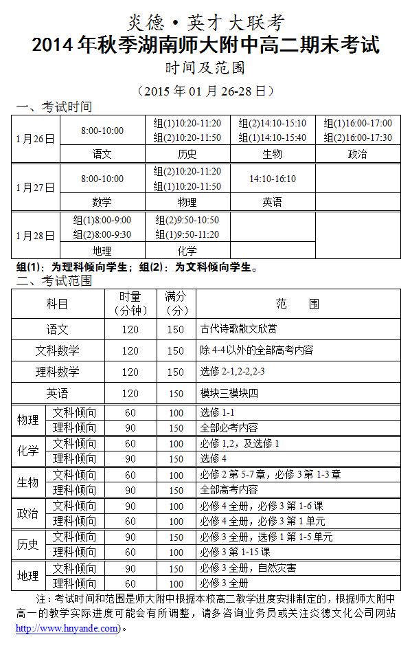 上一篇:炎德英才大聯考2014年秋季湖南師大附中高二第三次月考考試時間和范圍(2014.12.27、2015.01.04)