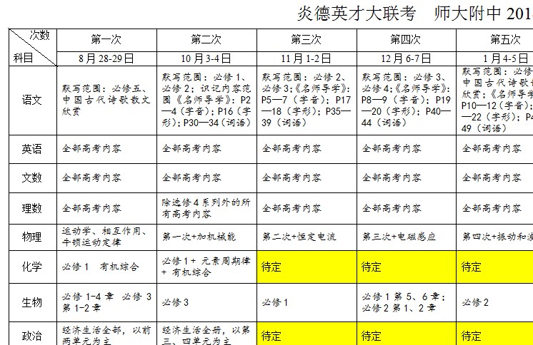 炎德英才大聯(lián)考師大附中2014屆高三月考試卷考試時(shí)間和范圍(第1-10次)