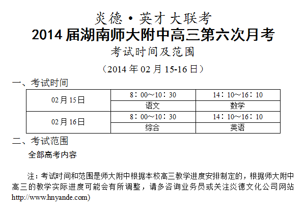 下一篇:炎德英才大聯(lián)考師大附中2014屆高三第7次月考考試時間和范圍(2014.03.14-15)