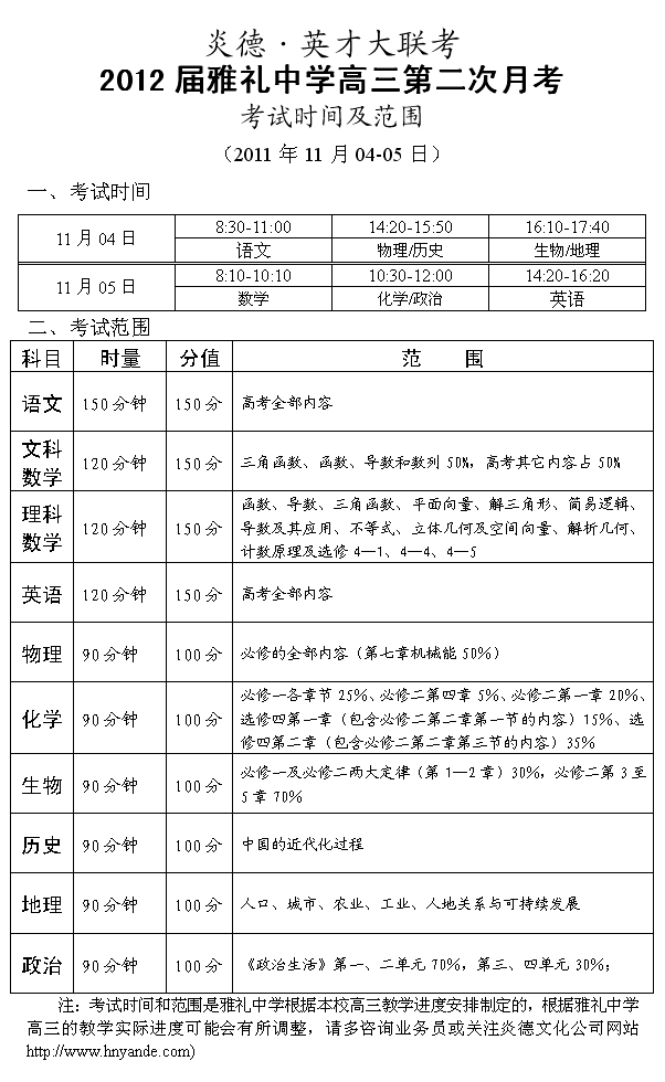 來源:本站原創點擊:2011-10-28 09:47:49收藏本文當前位置:考試范圍 雅禮中學 高三 正文