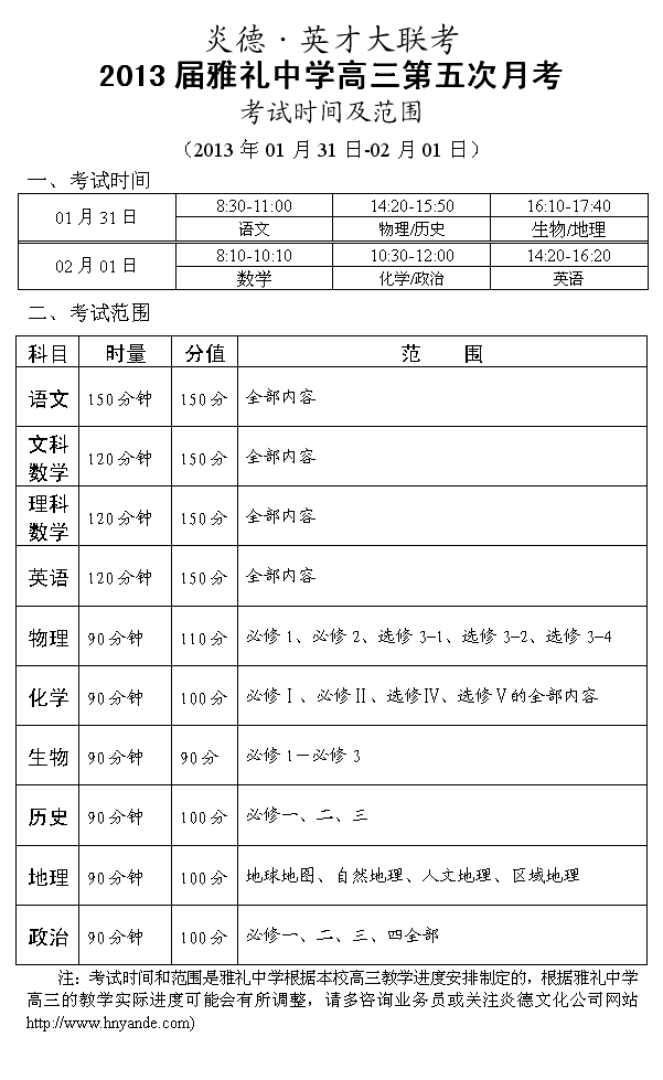 來源:炎德文化點擊:2013-01-25 15:09:02收藏本文當前位置:考試范圍 雅禮中學 高三 正文