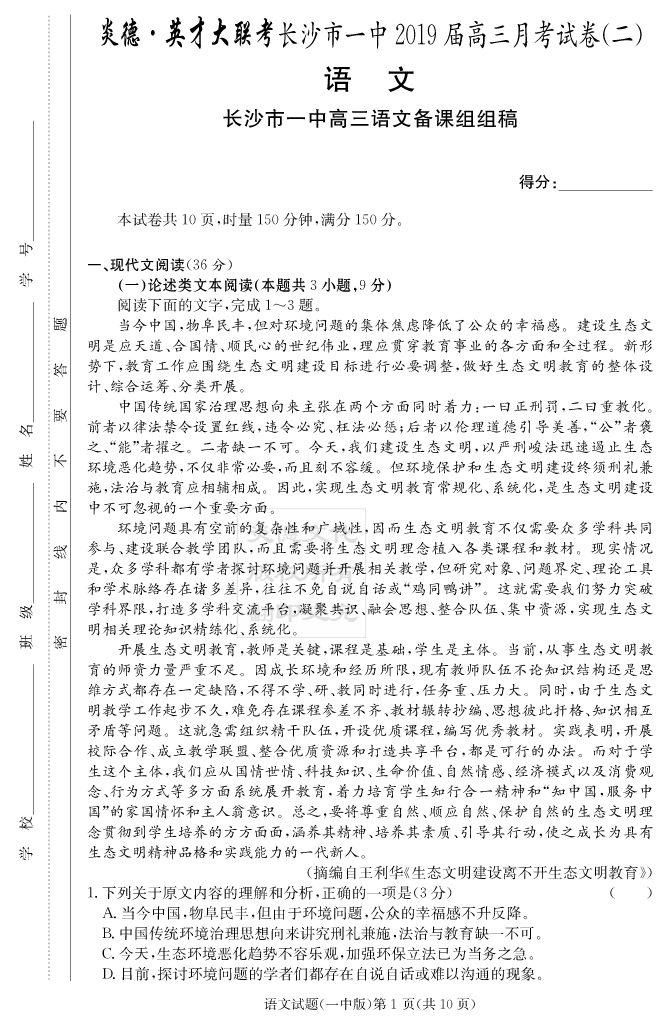 | 資源類別: | 名校月考 | |