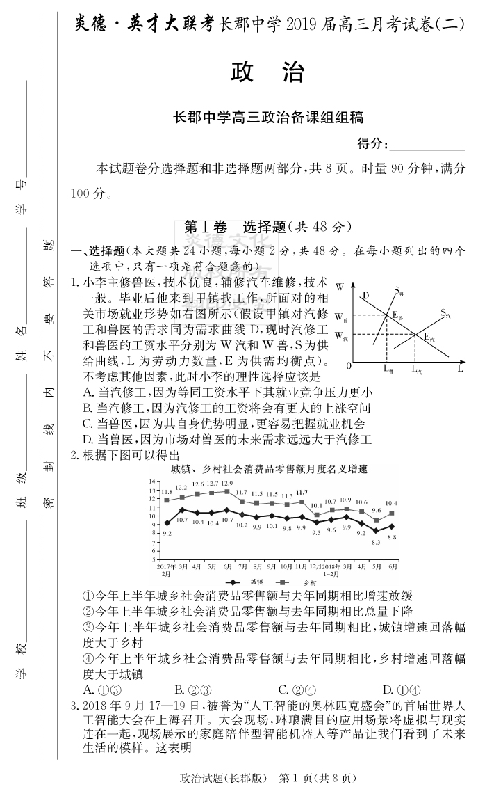 【政治】炎德英才大聯(lián)考2019長郡中學(xué)高三2次月考