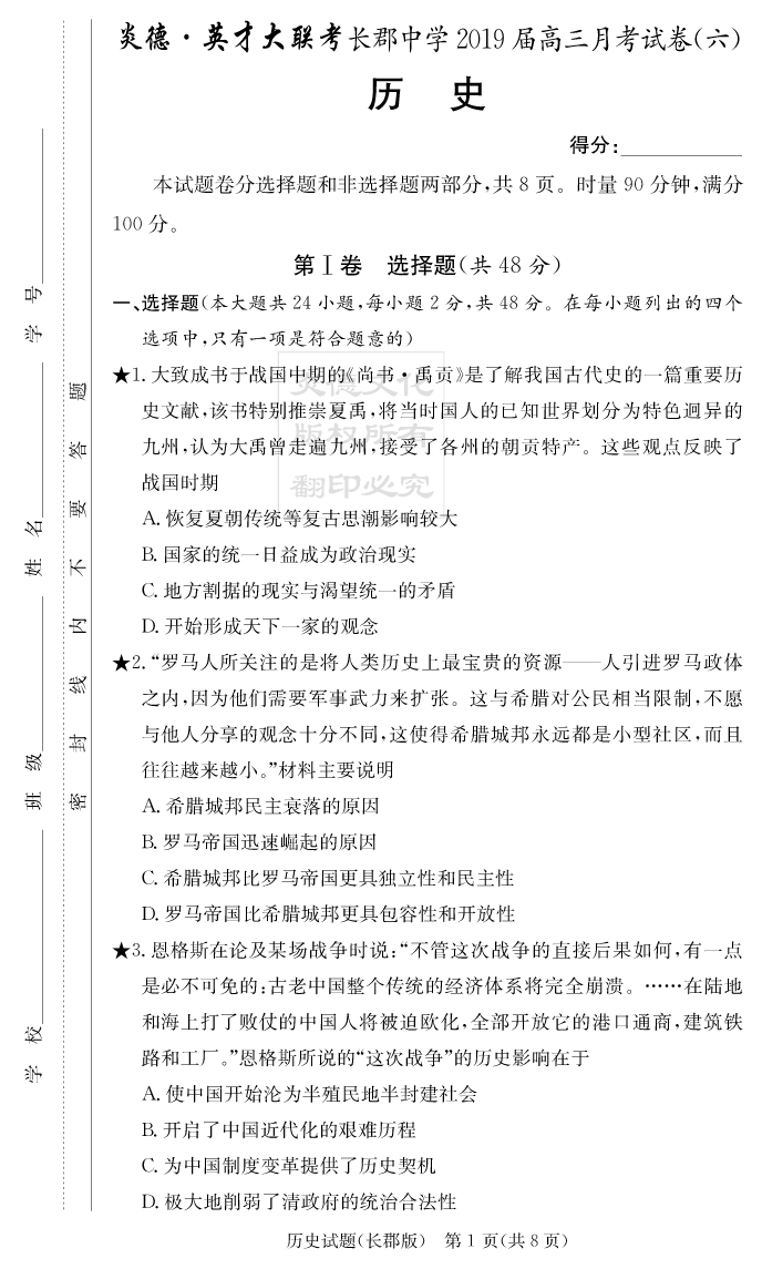 2026名師導學·高考總復習·小題量基礎周周考·歷史