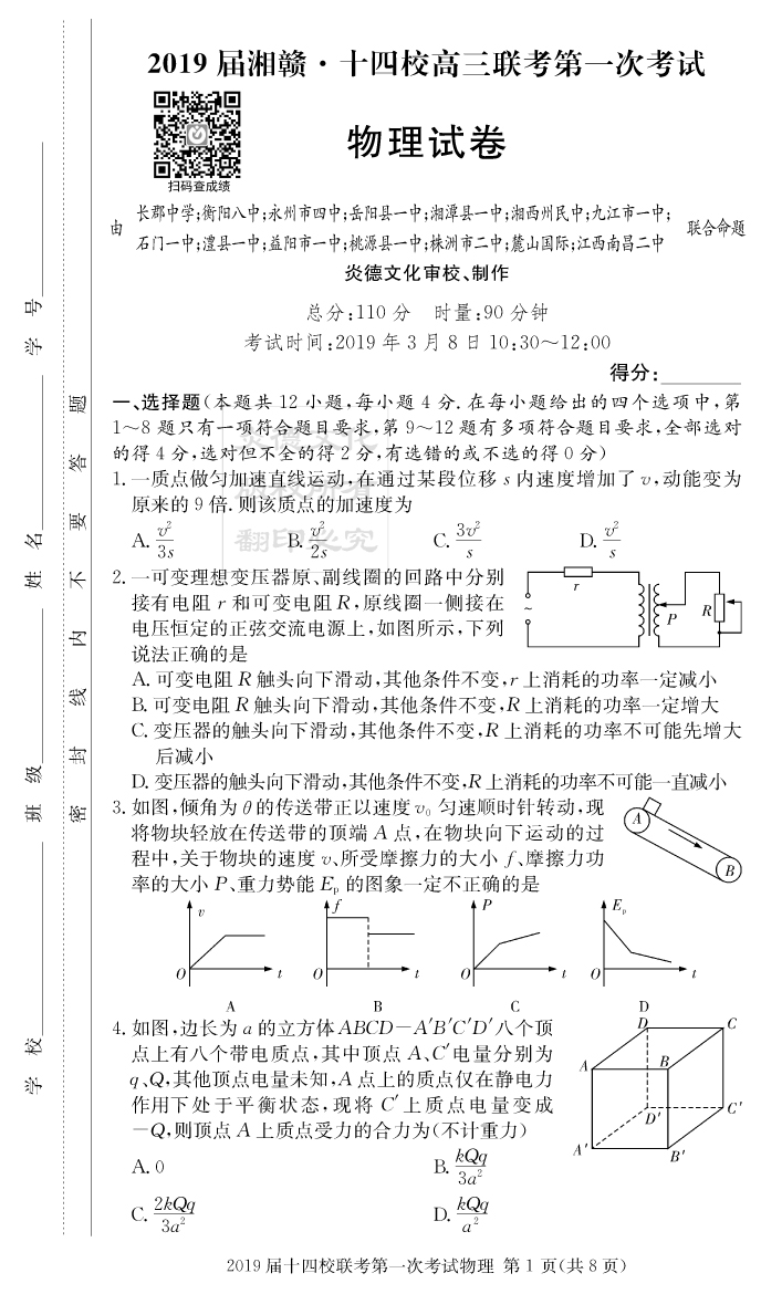 上一篇:【文數】炎德英才大聯考2019長郡中學高三7次月考(十四校聯考一)