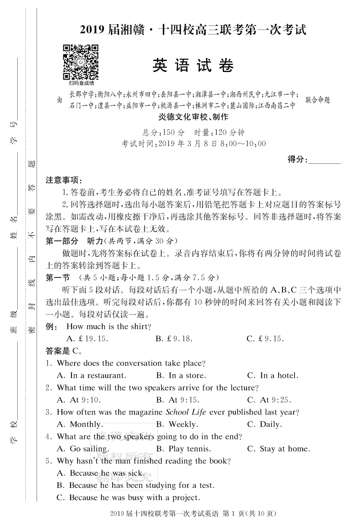 下一篇:【語文】炎德英才大聯考2019長郡中學高三7次月考(十四校聯考一)