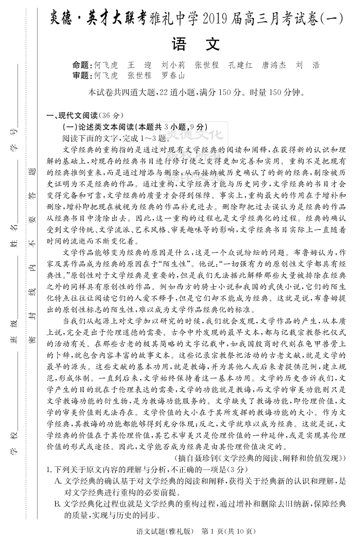 下一篇:【政治】炎德英才大聯考2019雅禮中學高三1次月考