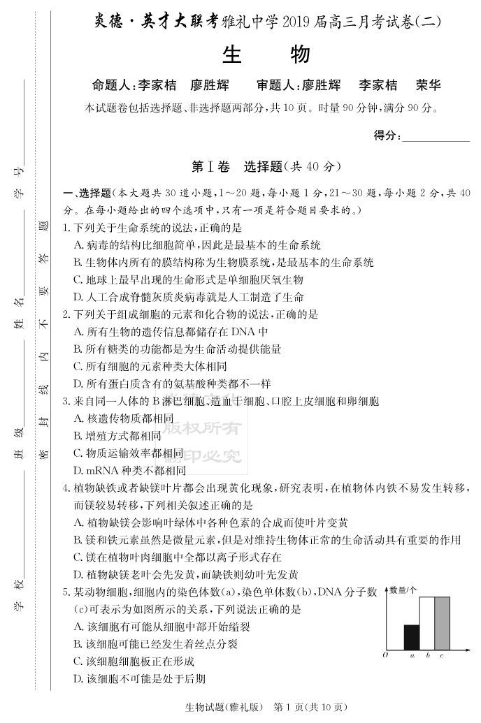 2026高考總復習單元同步滾動測試卷·生物
