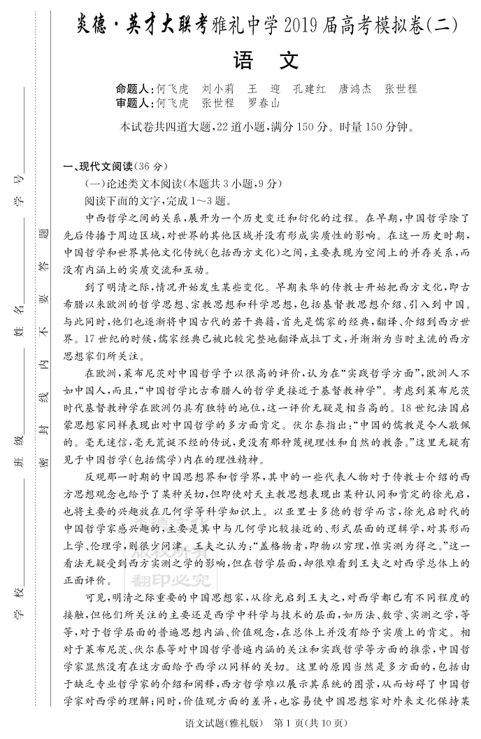 | 資源類別: | 名校月考 | |
