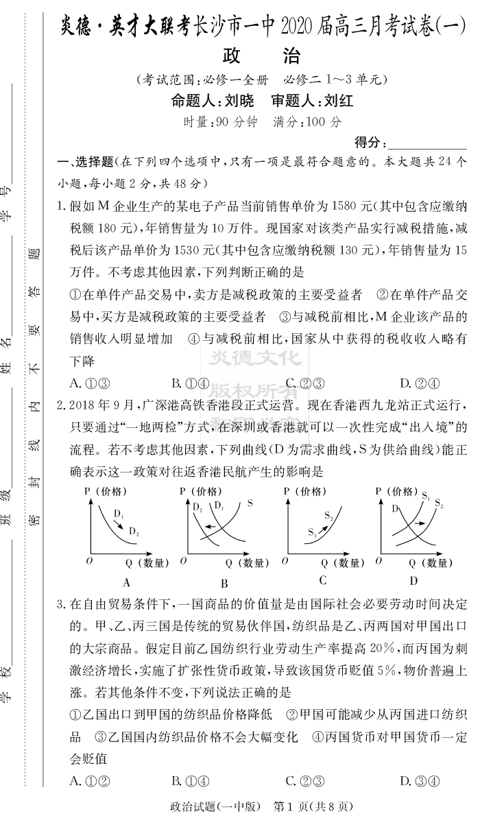 2025名師導學·名校名卷經典試題匯編·政治