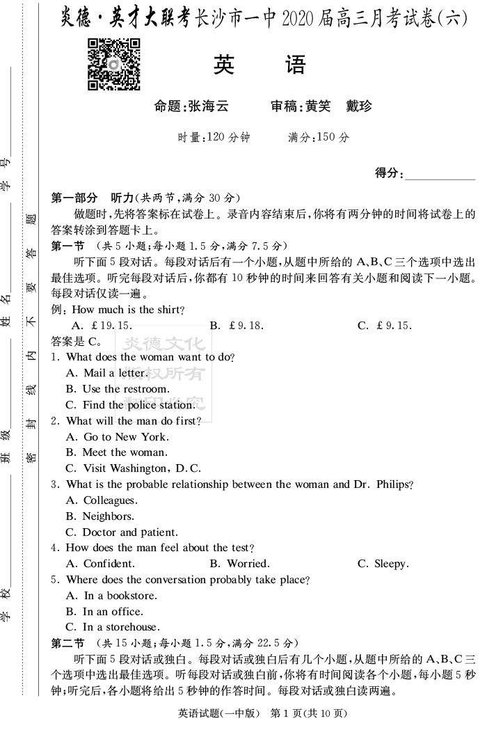 下一篇:【語文】炎德英才大聯考2020屆長沙市一中高三6次月考