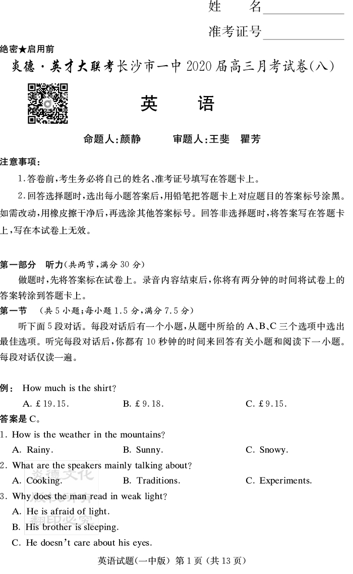 下一篇:【語文】炎德英才大聯考2020屆長沙市一中高三8次月考
