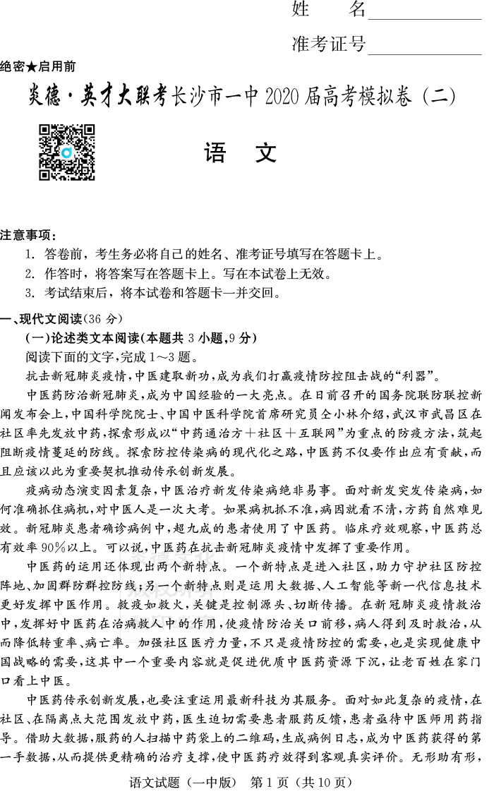 上一篇:【英語】炎德英才大聯(lián)考2020屆長沙市一中高三10次月考(模擬二)
