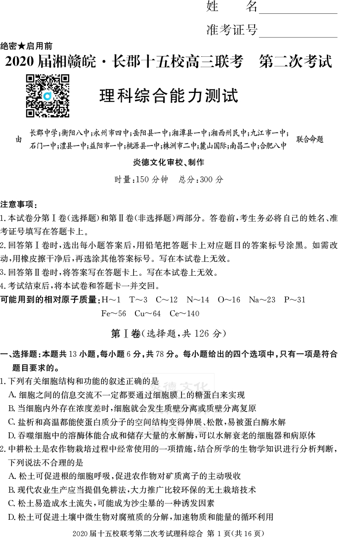 上一篇:【理數】炎德英才大聯考2020屆長郡中學高三8次月考(十五校聯考一)