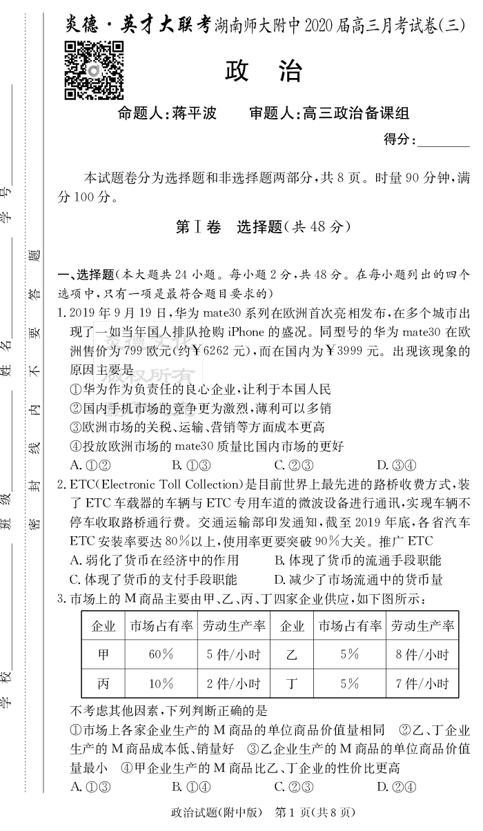 下一篇:【地理】炎德英才大聯考2020屆師大附中高三4次月考