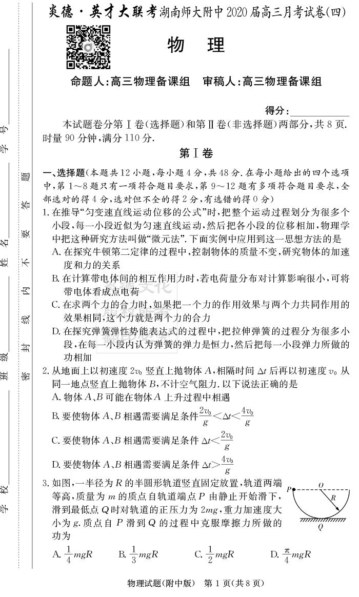 上一篇:【文數】炎德英才大聯考2020屆師大附中高三4次月考