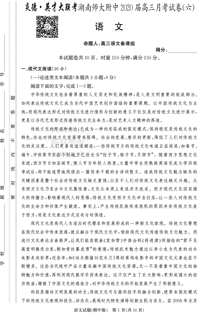 上一篇:【英語】炎德英才大聯考2020屆師大附中高三6次月考