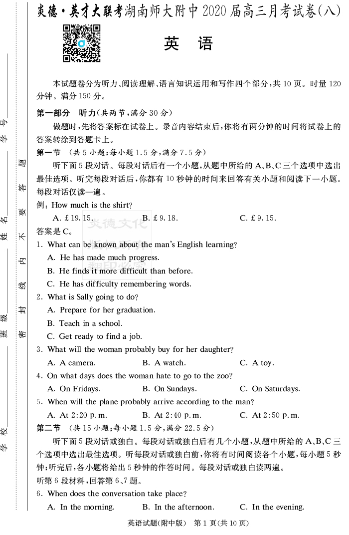 下一篇:【語文】炎德英才大聯考2020屆師大附中高三8次月考