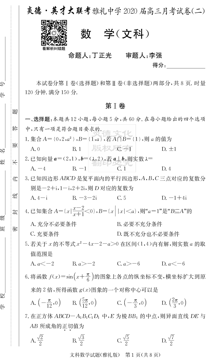 上一篇:【生物】炎德英才大聯考2020屆雅禮中學高三2次月考