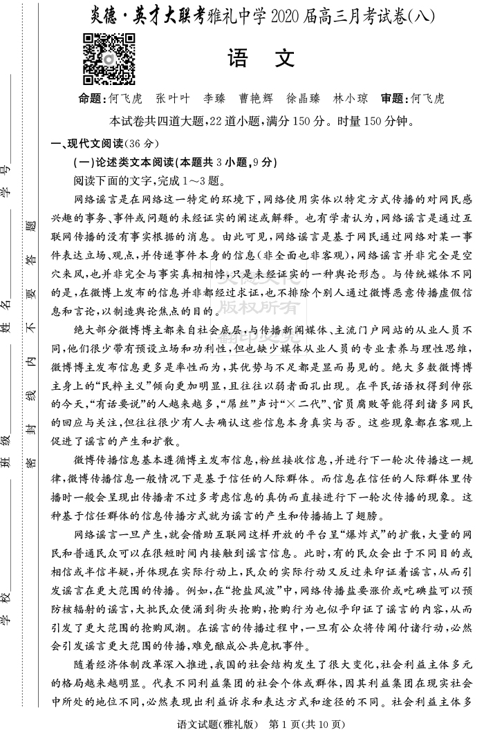 上一篇:【英語】炎德英才大聯考2020屆雅禮中學高三8次月考