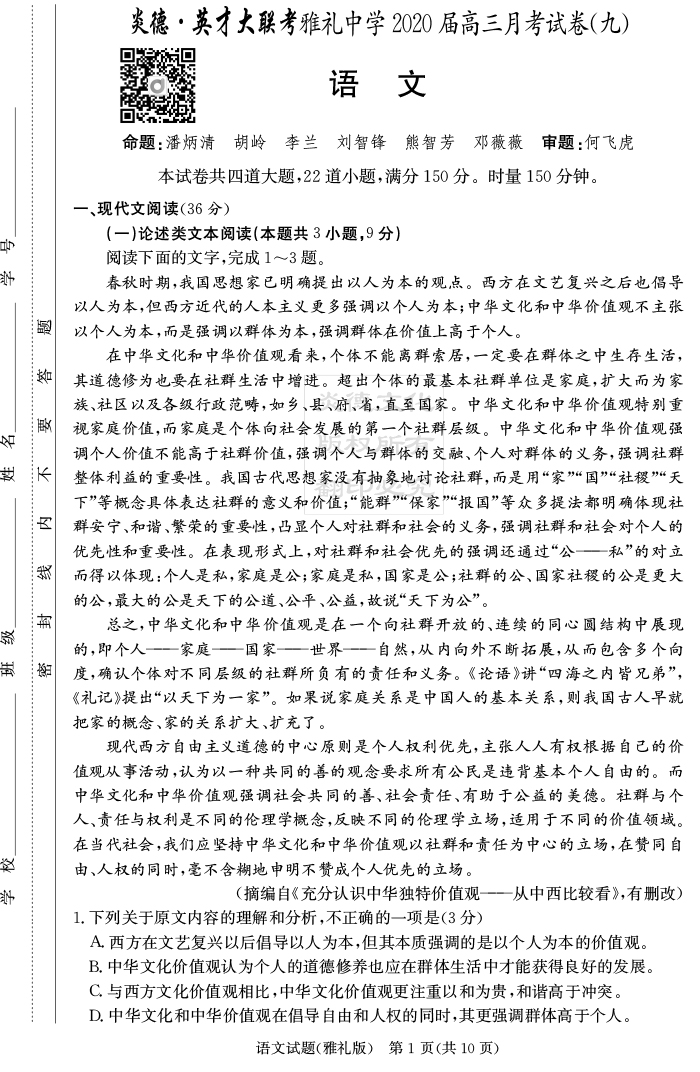 | 資源類別: | 名校月考 | |
