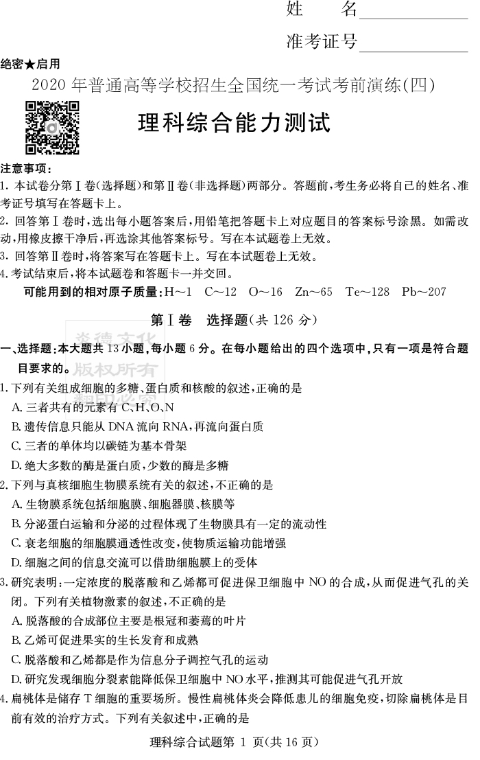 上一篇:【理數(shù)】2020年普通高等學校招生全國統(tǒng)一考試考前演練(四)