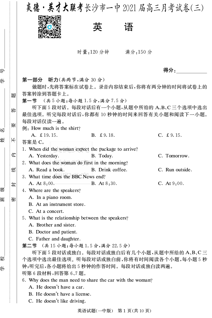 下一篇:【語文】炎德英才大聯考2021屆長沙市一中高三3次月考