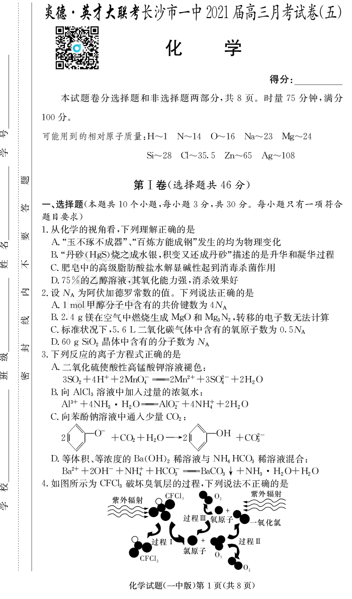 2026高考總復習單元同步滾動測試卷·化學