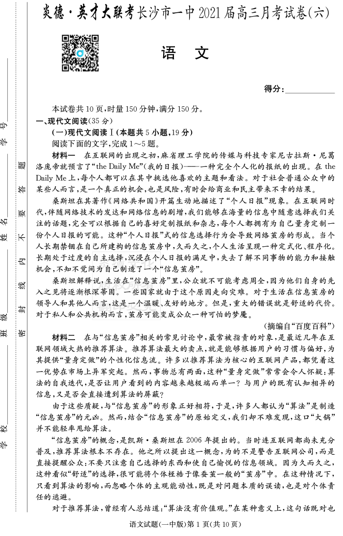 上一篇:【英語】炎德英才大聯考2021屆長沙市一中高三6次月考