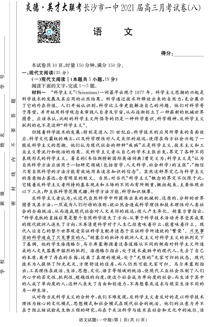 上一篇:【英語】炎德英才大聯考2021屆長沙市一中高三8次月考