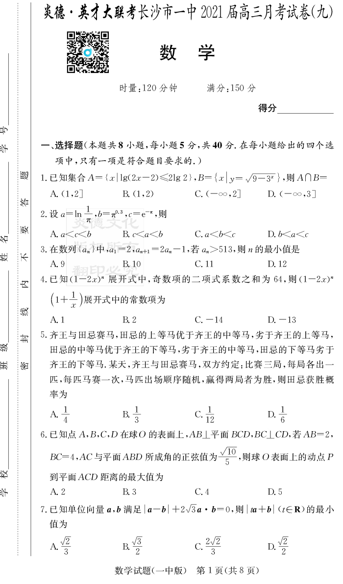 上一篇:【生物】炎德英才大聯考2021屆長沙市一中高三9次月考