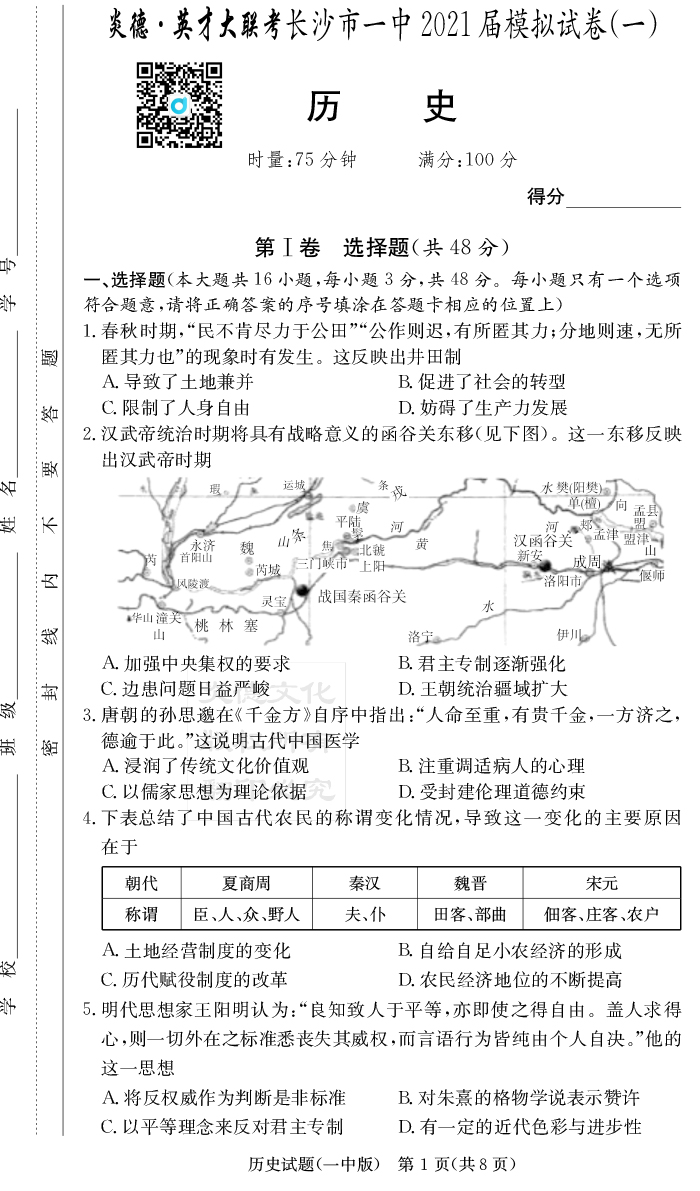 2025名師導學·名校名卷經典試題匯編·歷史