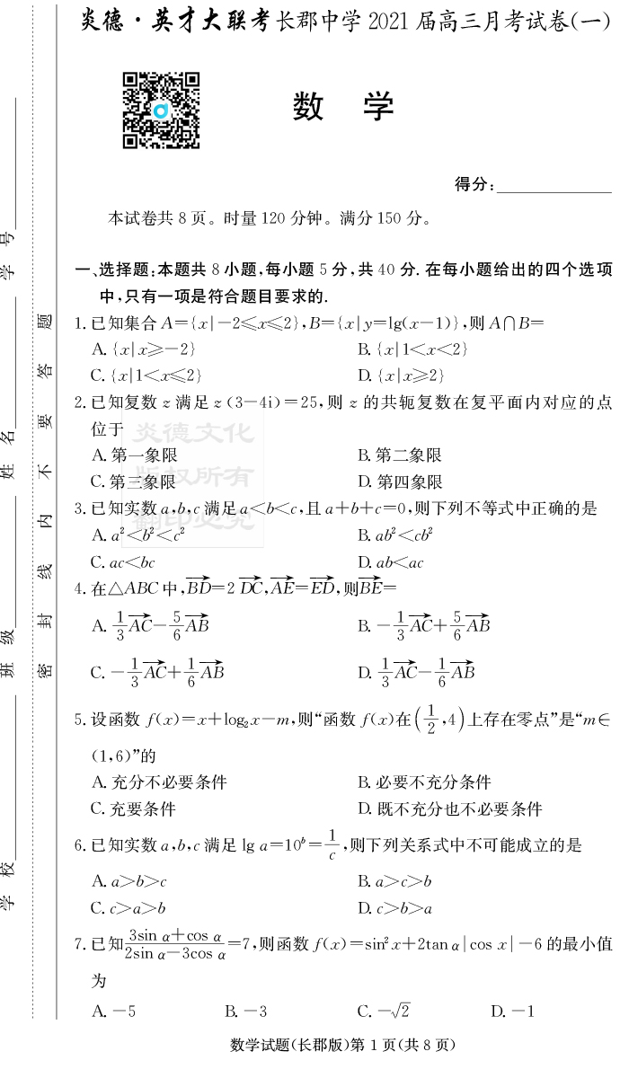 上一篇:【生物】炎德英才大聯考2021屆長郡中學高三1次月考