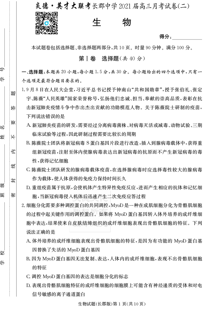 2026高考總復習單元同步滾動測試卷·生物